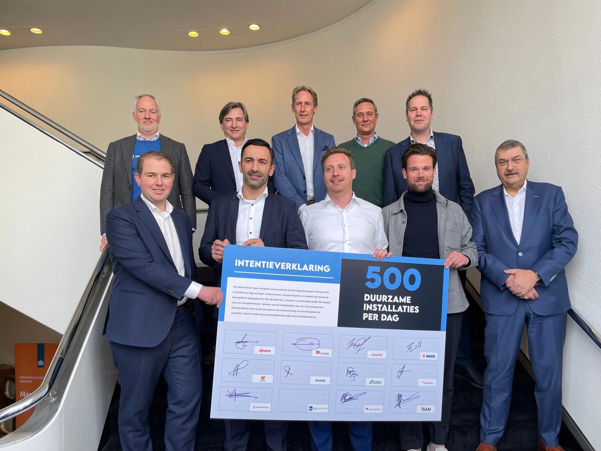 Vandaag, op 26 januari 2023, hebben wij samen met negen andere koplopers in de installatiebranche de intentieverklaring '500 duurzame installaties per dag' ondertekend. De ondertekening vond plaats tijdens het evenement 'Partners in energie uitdagingen' van het ministerie van Economische Zaken & Klimaat in Grand Hotel Gooiland in Hilversum.